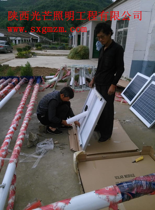 工人組裝太陽能板,燈頭